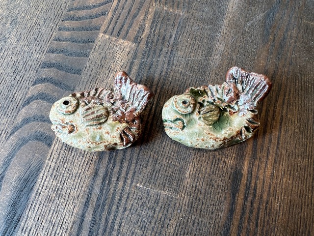 西山茂作品 長さ6cm×幅4cm高さ3cm 赤土に緑釉をかけた、シンプルなタイちゃんが素朴でいい感じ。普段使いにどうぞ! *一つのお値段です。