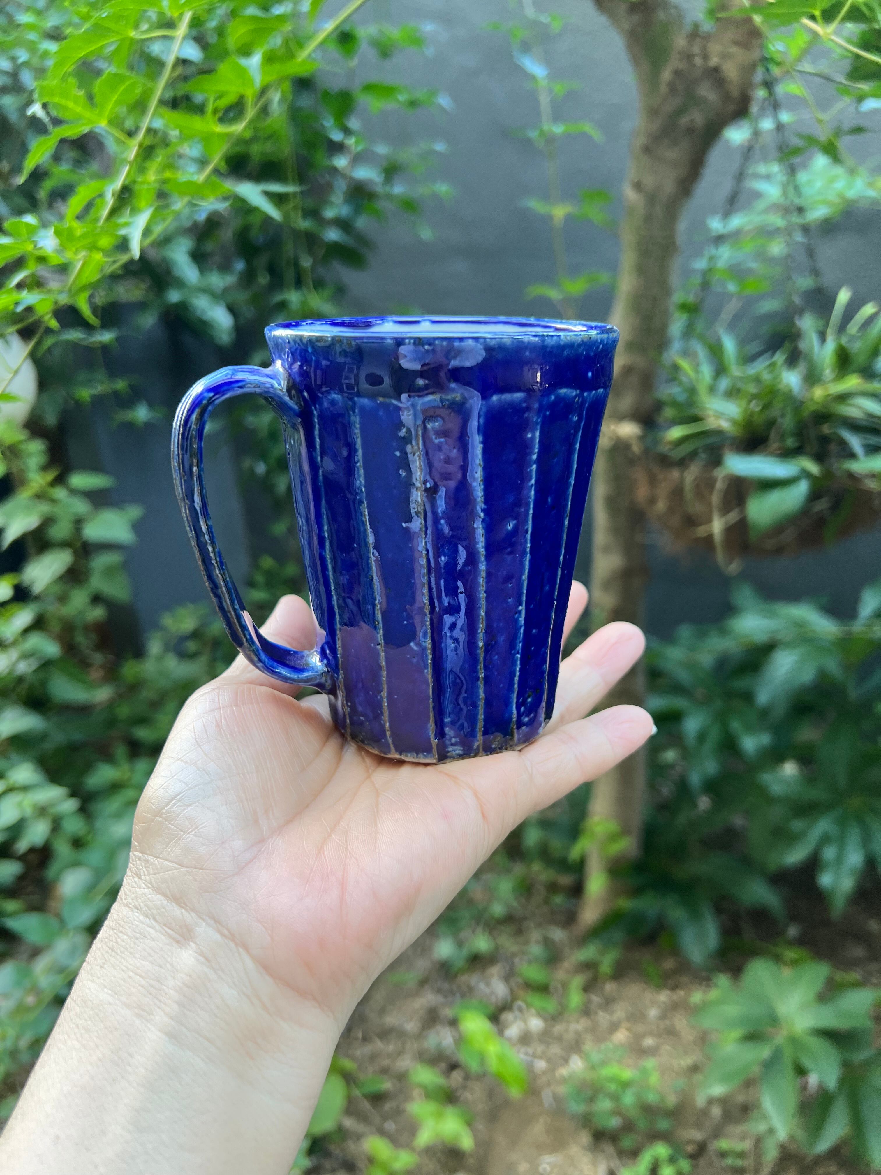 全体に白土を掛けてから、青い釉薬を被せているので、ブルーの色が沈んでいません。