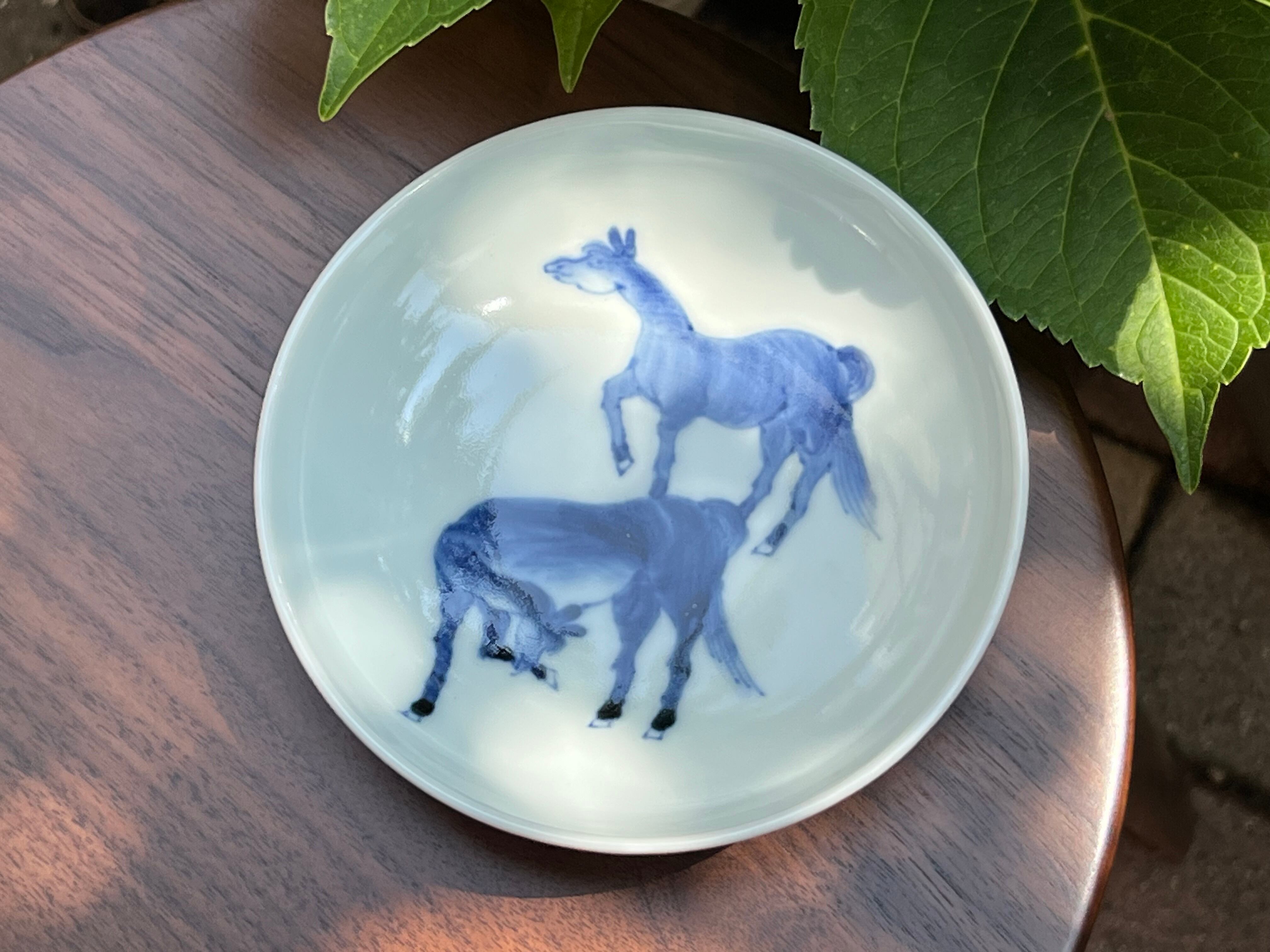 岩永さんの作品では珍しい馬の絵柄です。よく見ると2頭の馬が微笑んでいます。「左馬」は商売繁盛、風水ではエネルギーや行動力の象徴とされている。