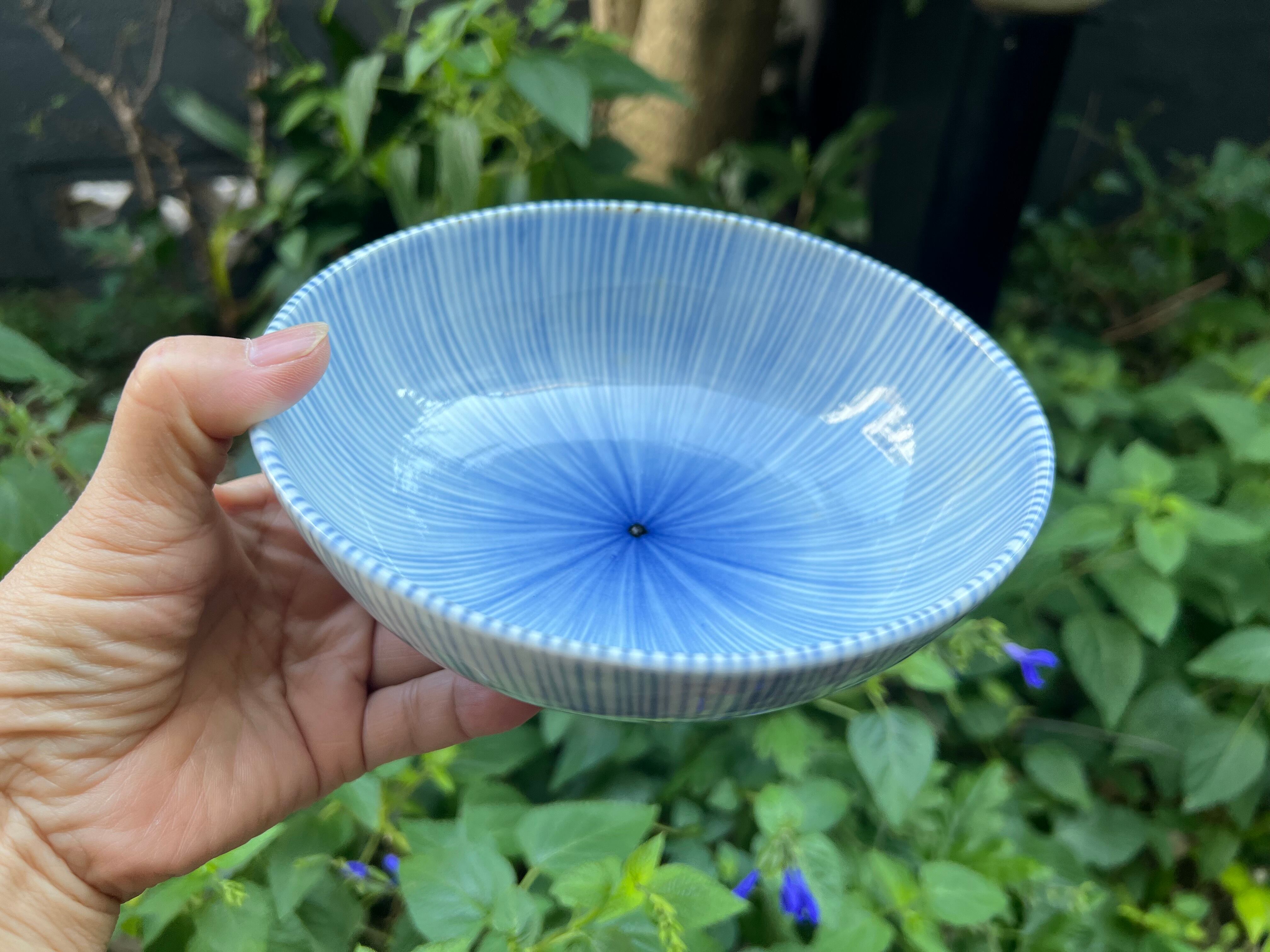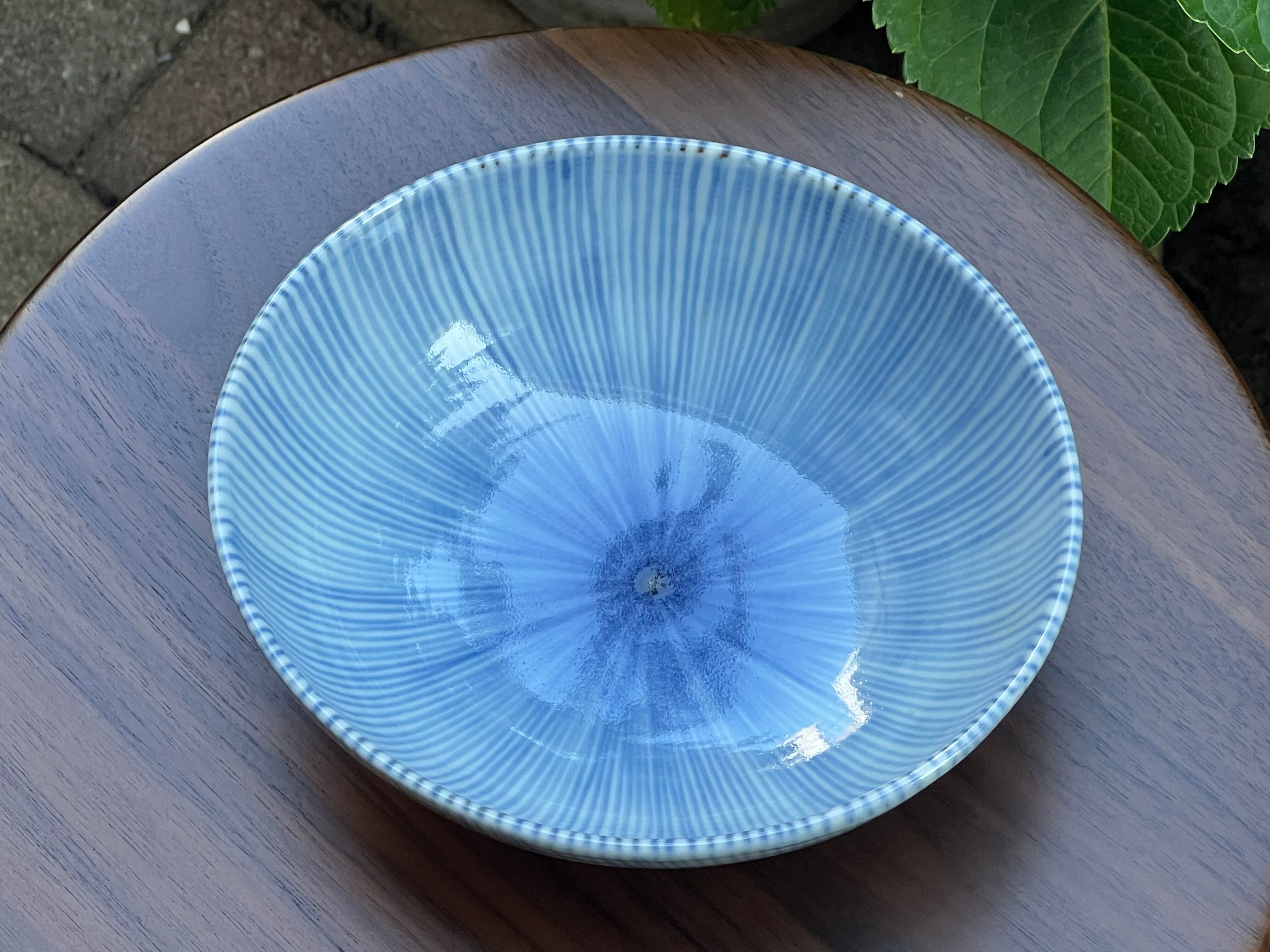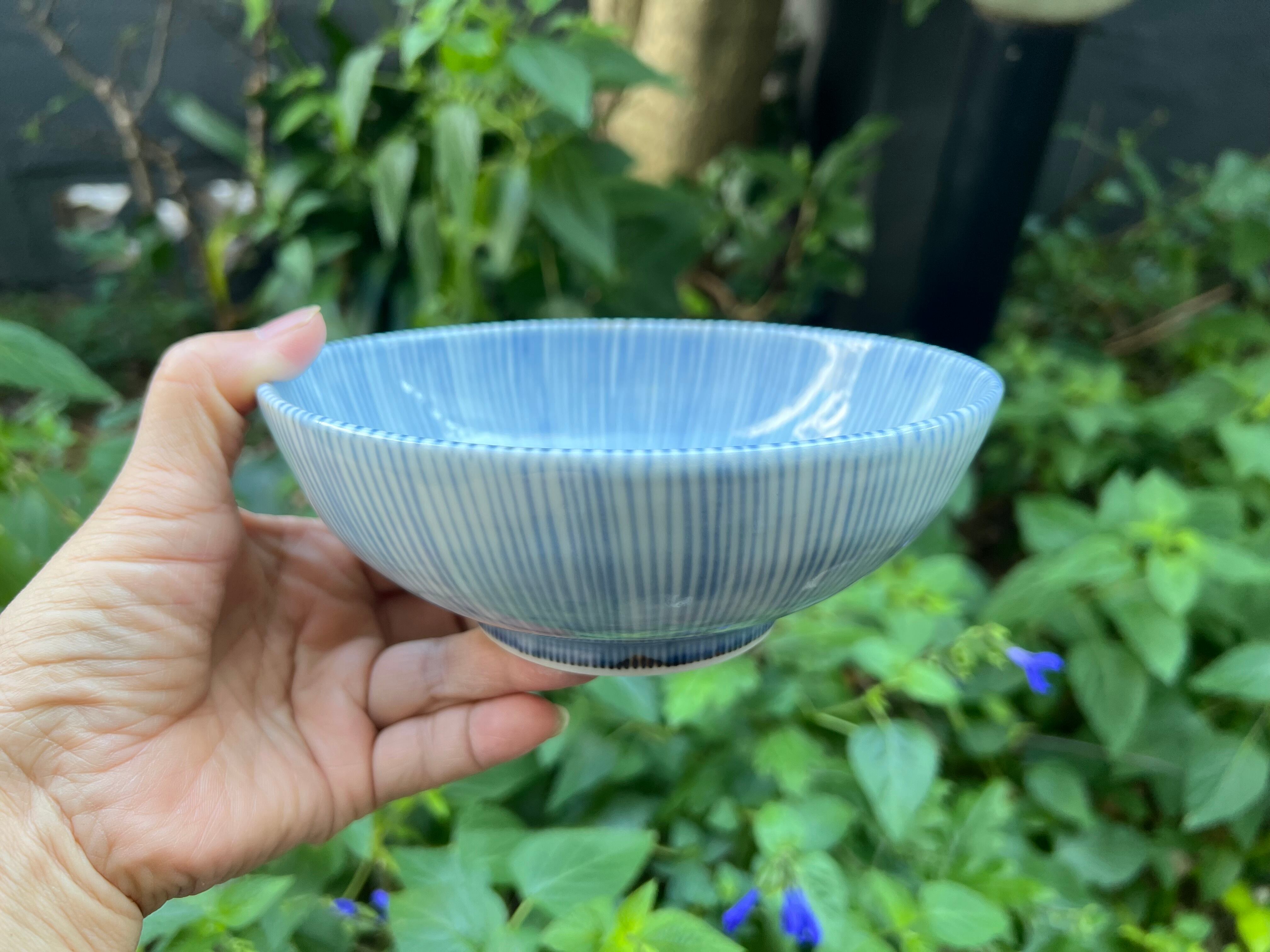 木賊の柄の特徴は、全体に描かれた強弱の呉須の線が柔らかく、盛りこんだ食品の邪魔せず、何年使っても飽きがこないところ。やはりこれは手描きの良さですね。おひとつ如何ですか!