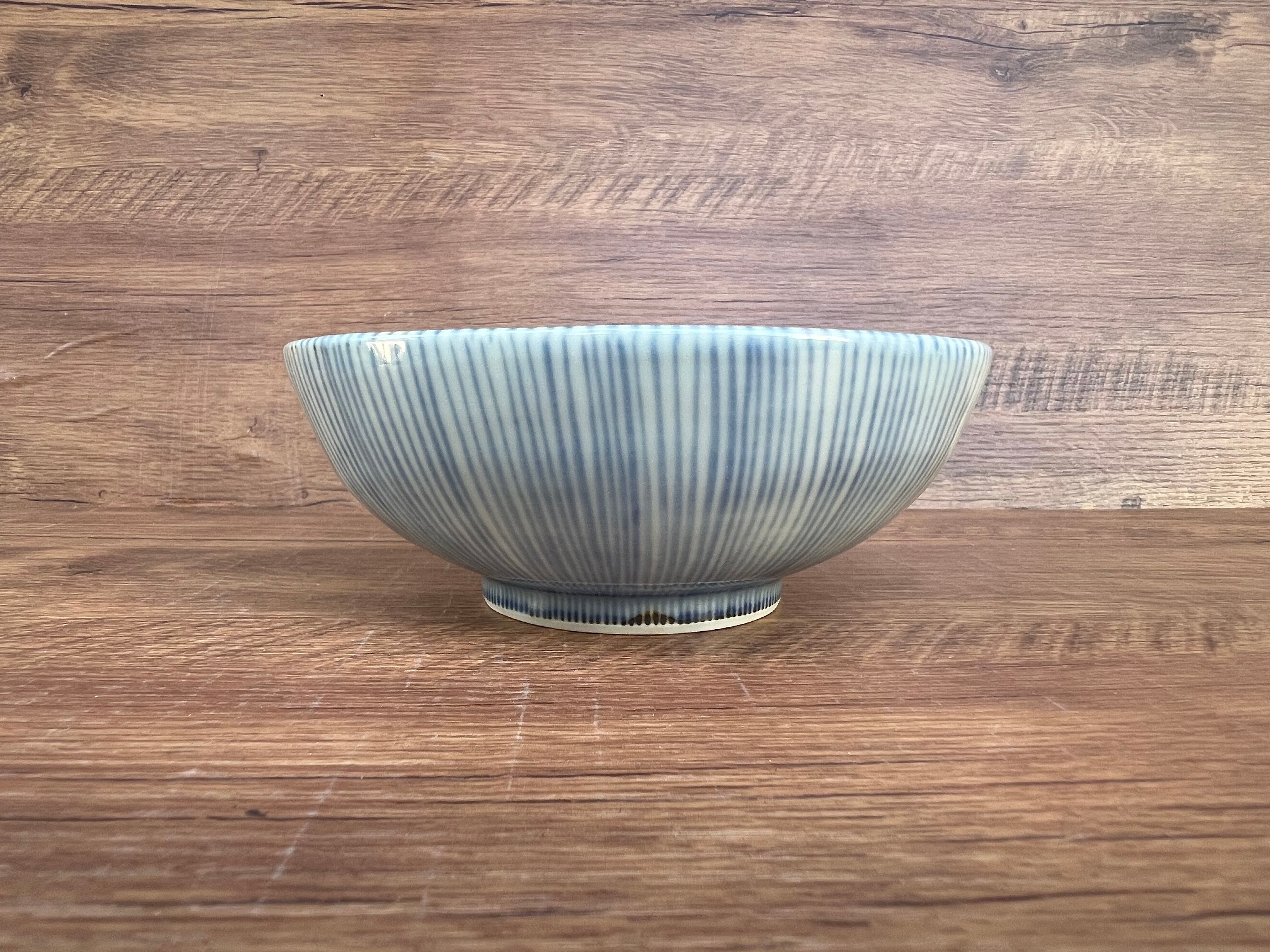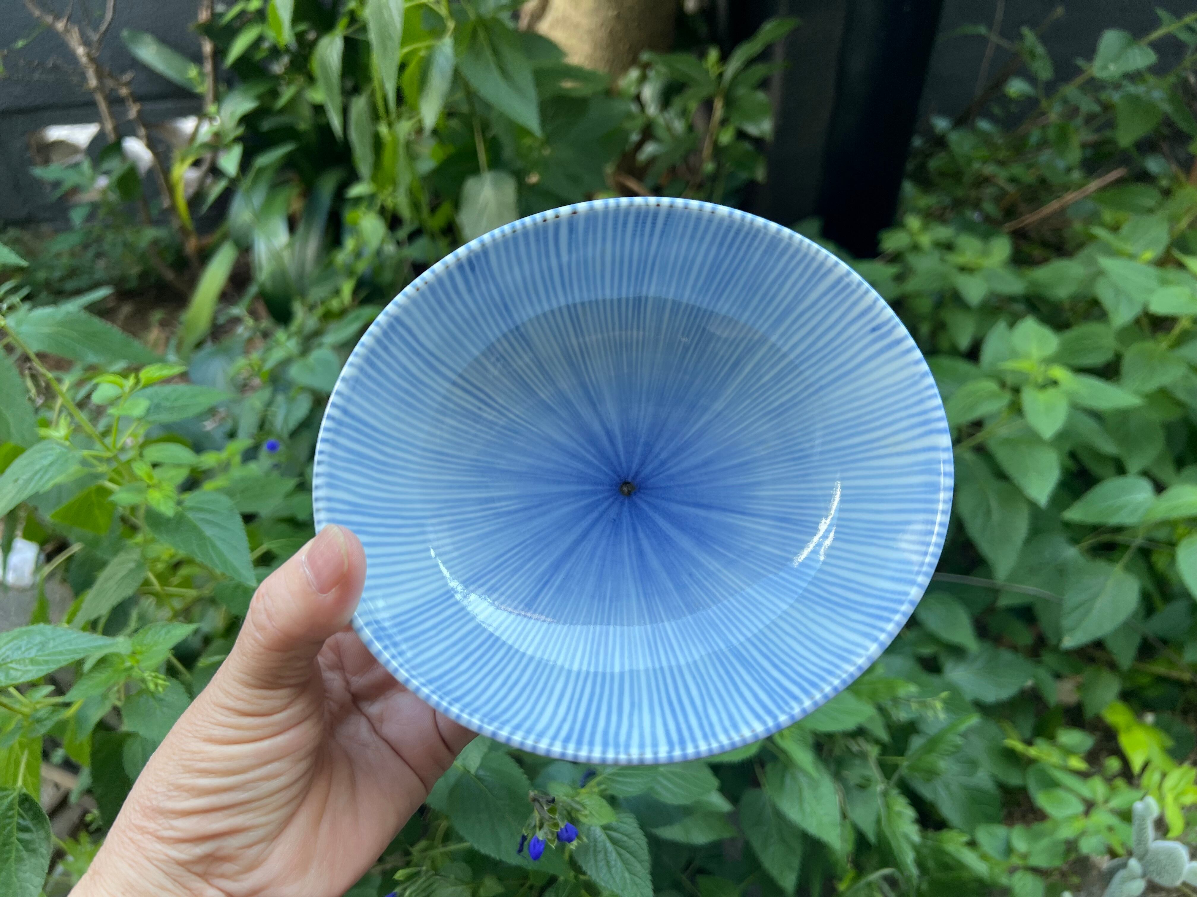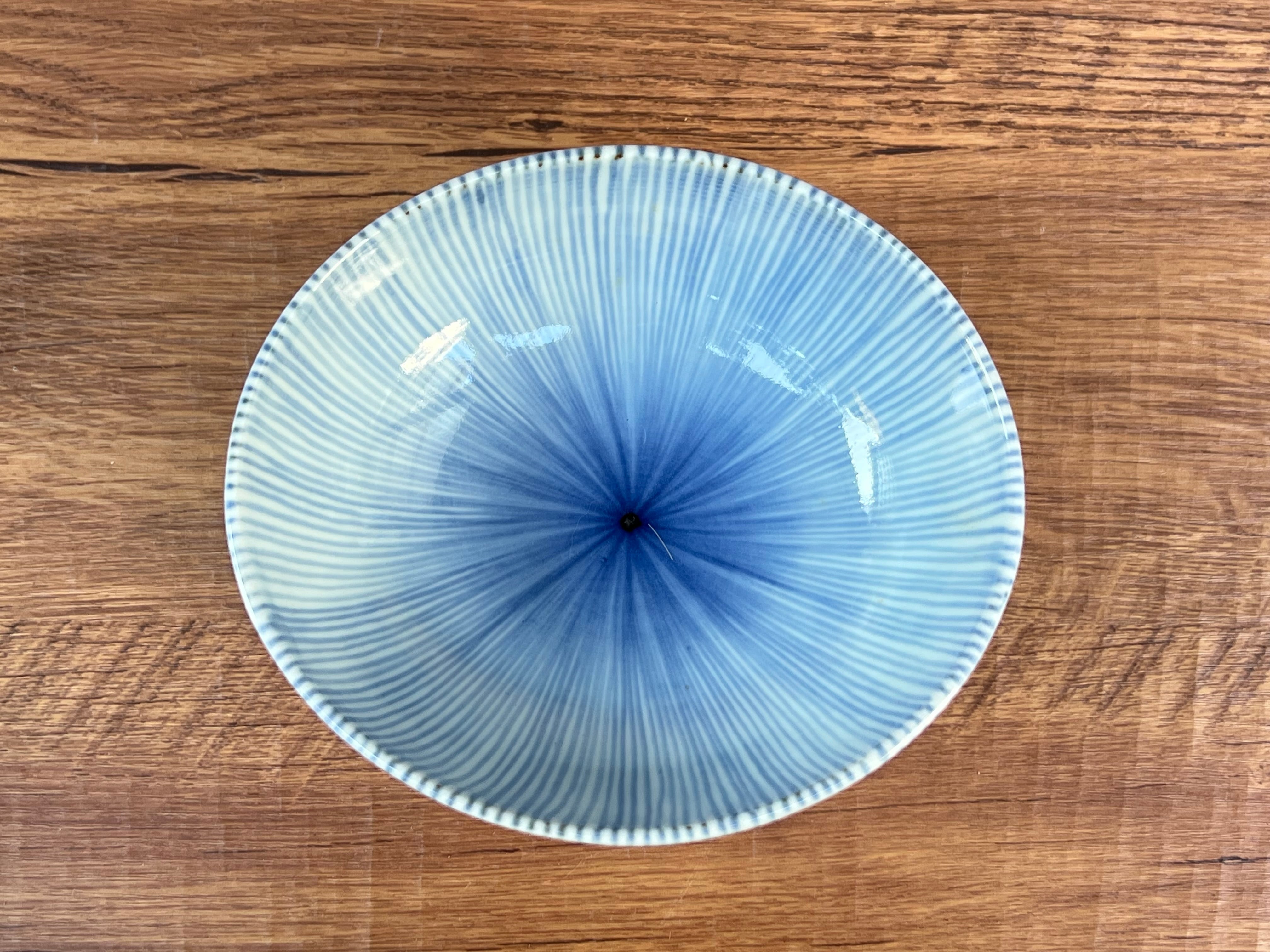 木賊の柄の特徴は、全体に描かれた強弱の呉須の線が柔らかく、盛りこんだ食品の邪魔せず、何年使っても飽きがこないところ。やはりこれは手描きの良さですね。おひとつ如何ですか!