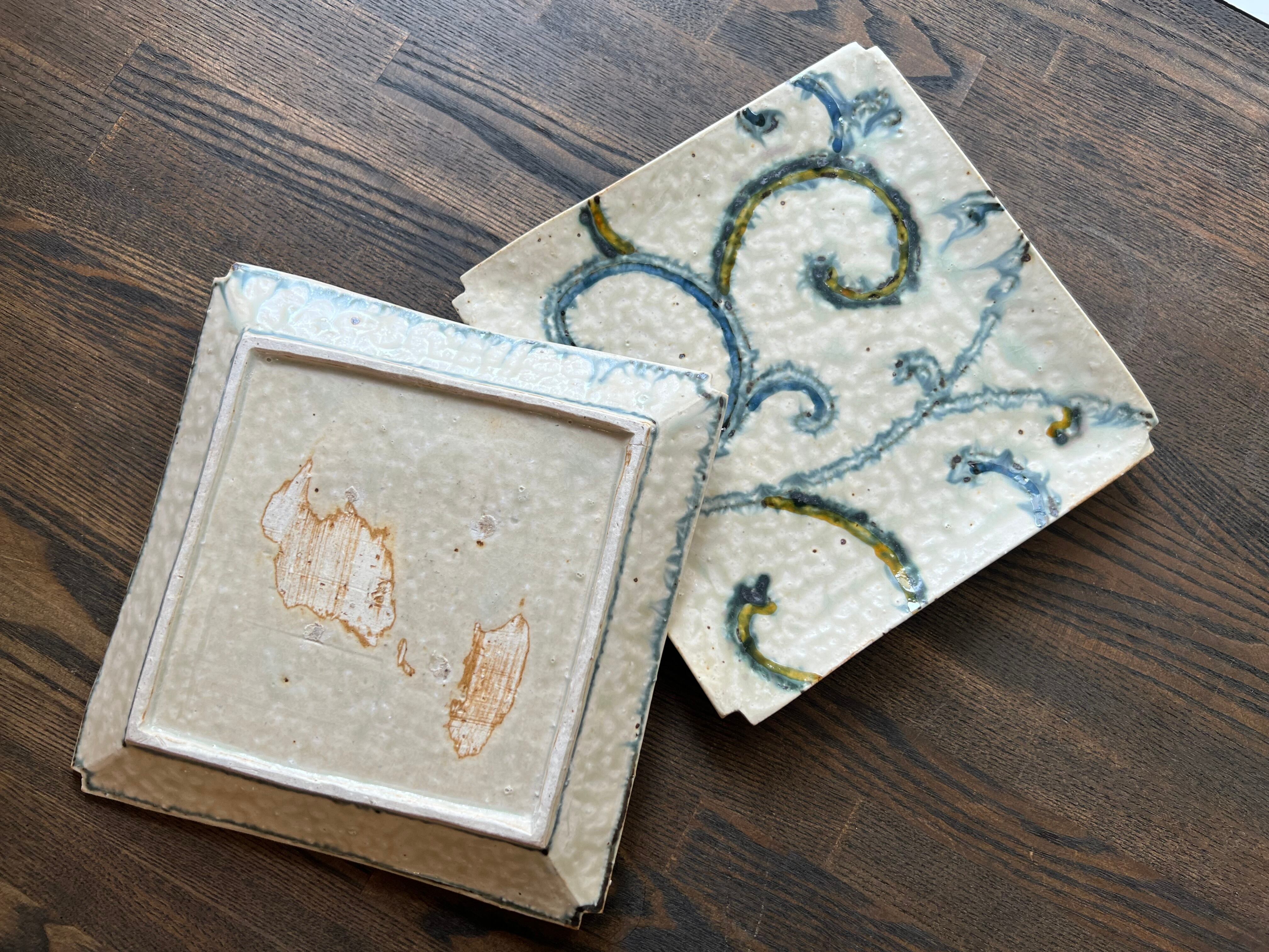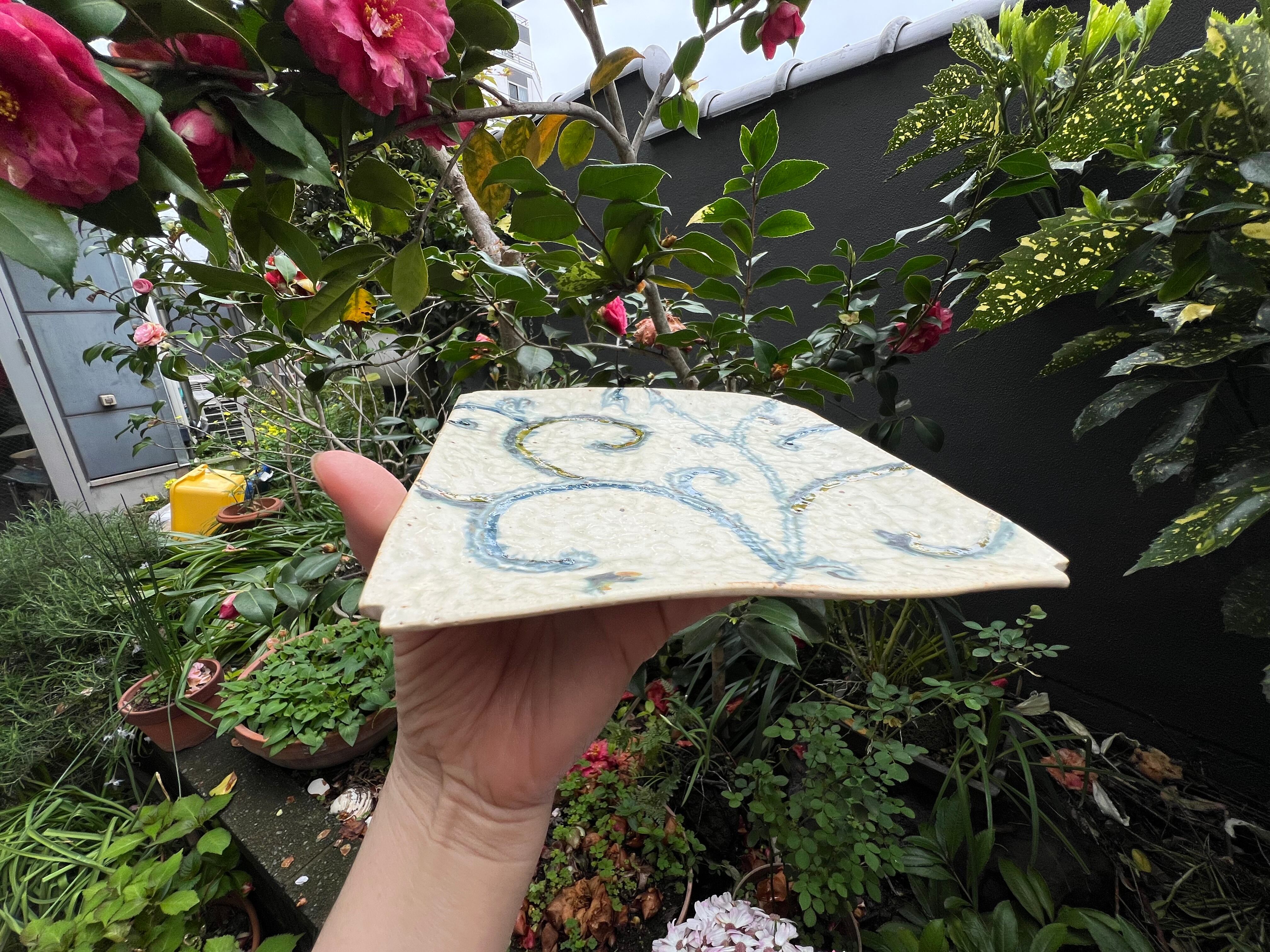 O-26-12、安南色絵蔓草文四方隅切皿