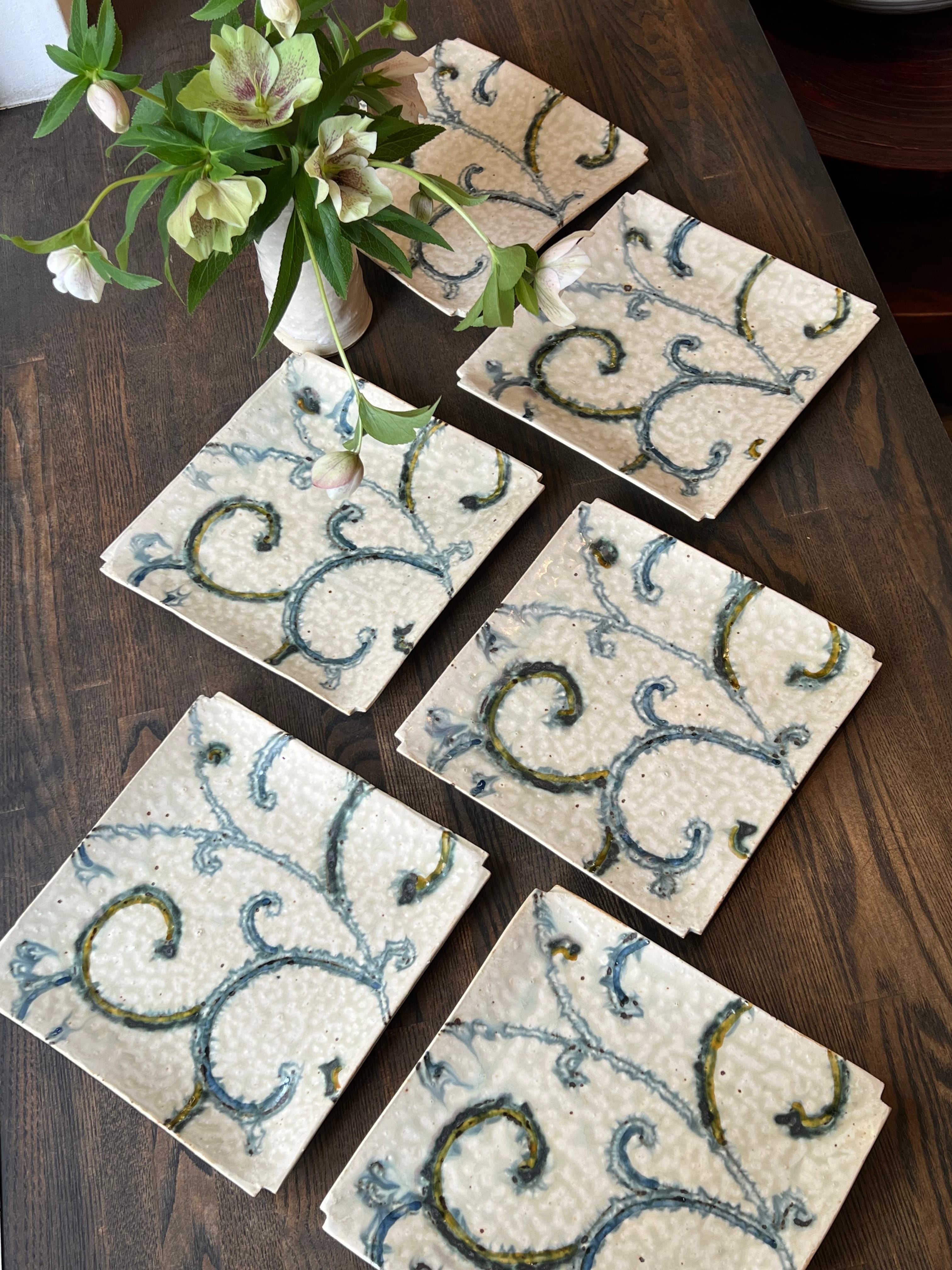 呉須の安南にじみが蔓の毛のように見えて愉しいです。色絵が軽くのっているからか品よく仕上がっています。和洋どちらにもお使い頂けます。※一枚の価格です。枚数をお求めの場合は、ご連絡ください。送料がお安くなります。