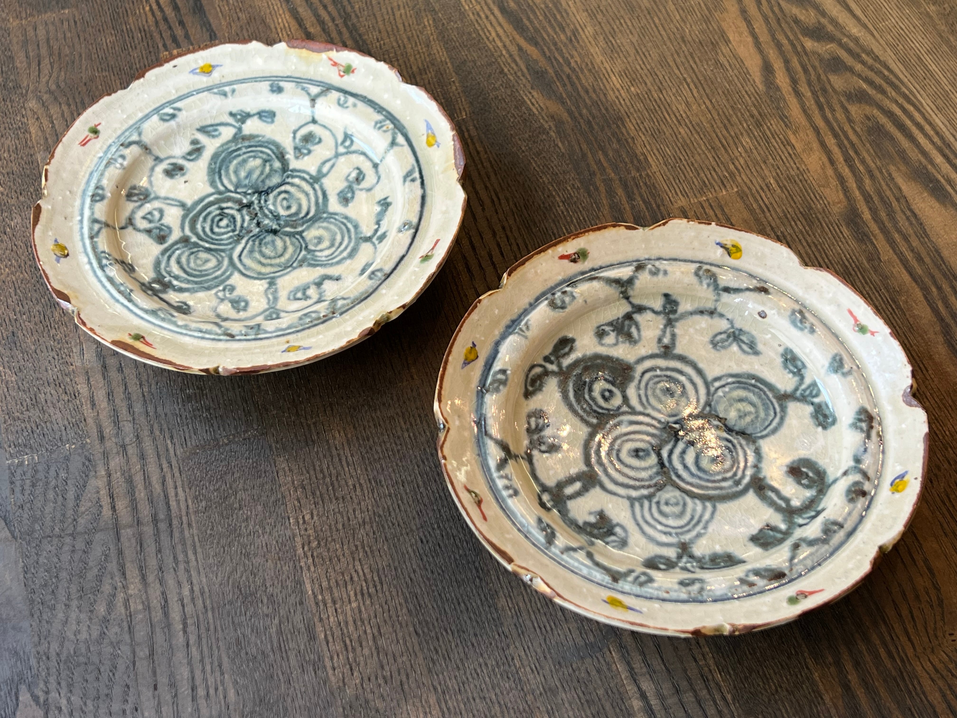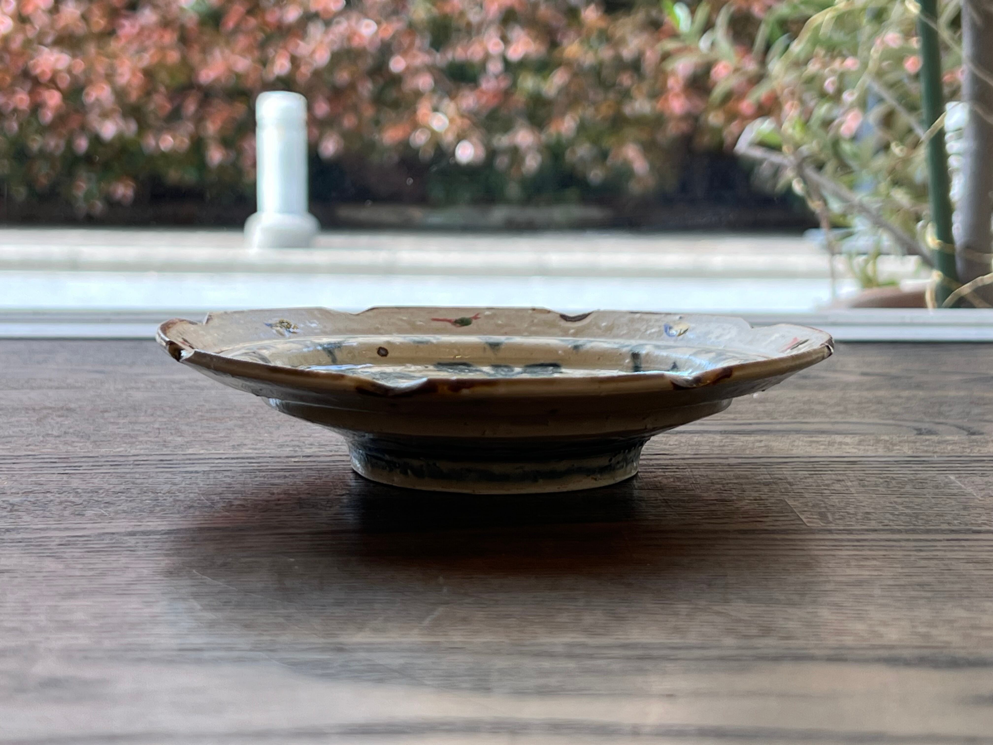 O-26-14、安南色絵渦文五寸輪花皿